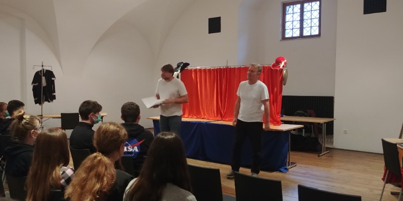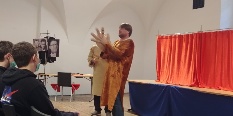 Legenda V+W. Tak se jmenovalo divadelní představení určené pro 7. - 9. ročník, ve kterém nám Divadélko pro školy opět zábavnou formou představilo tentokrát existenci a tvorbu Osvobozeného divadla.