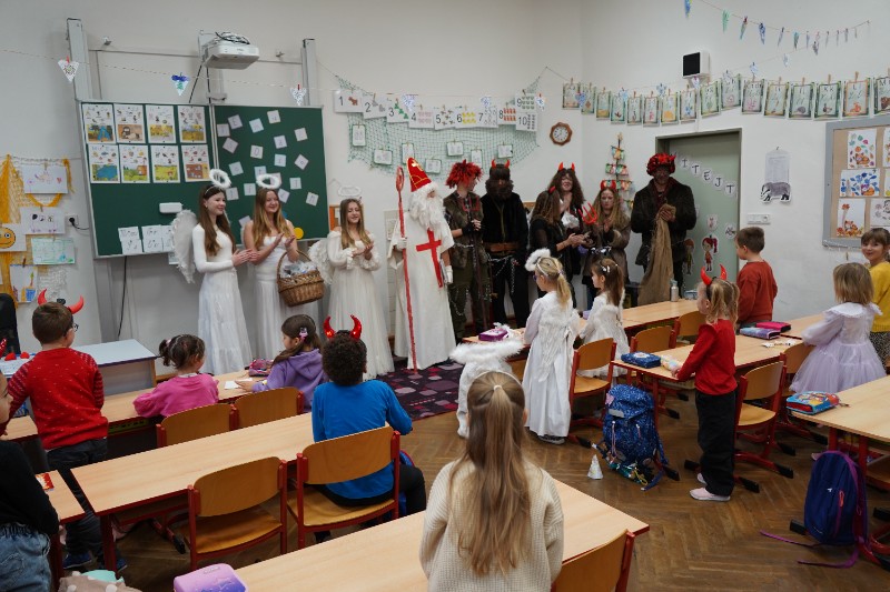 V pátek 5. prosince dorazili Mikuláš, andělé a čerti i knám na Zámeckou :-)