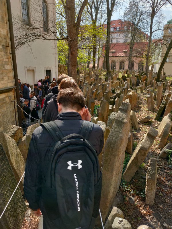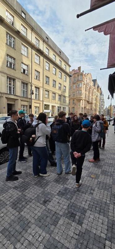 Ještě před úsvitem se osmáci v úterý 14. dubna vydali na jednu z nejkrásnějších dějepisných exkurzí. Do Prahy. Čekala je návštěva Židovského Města, kde si prohlédli vybrané synagogy a Starý židovský hřbitov. Odpoledne se vydali Královskou cestou na Pražský hrad. Vyrazili od Prašné brány přes Staroměstské náměstí, Karlovu ulici, Karlův most až na Hradčanské náměstí. Odtud zamířili k Loretě a na Petřín.