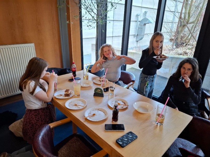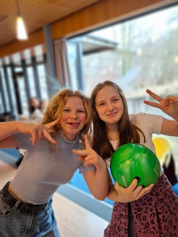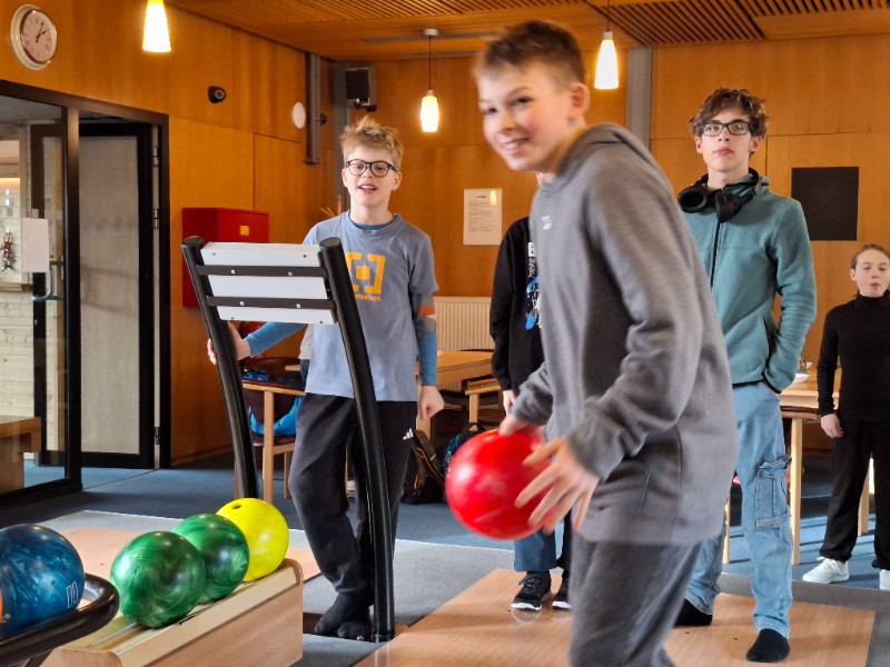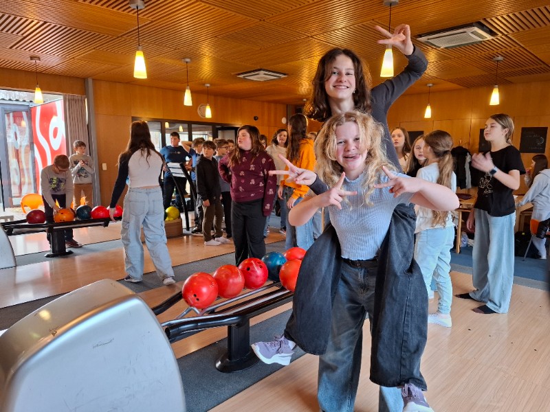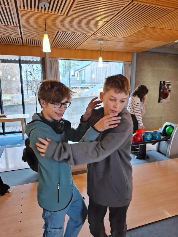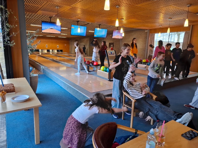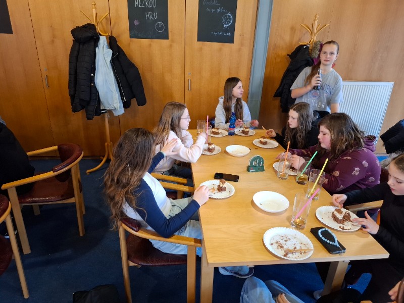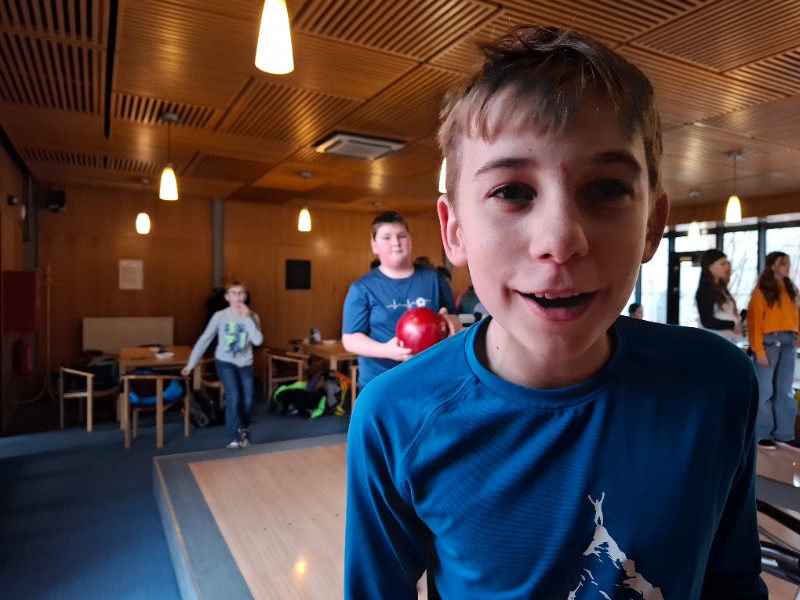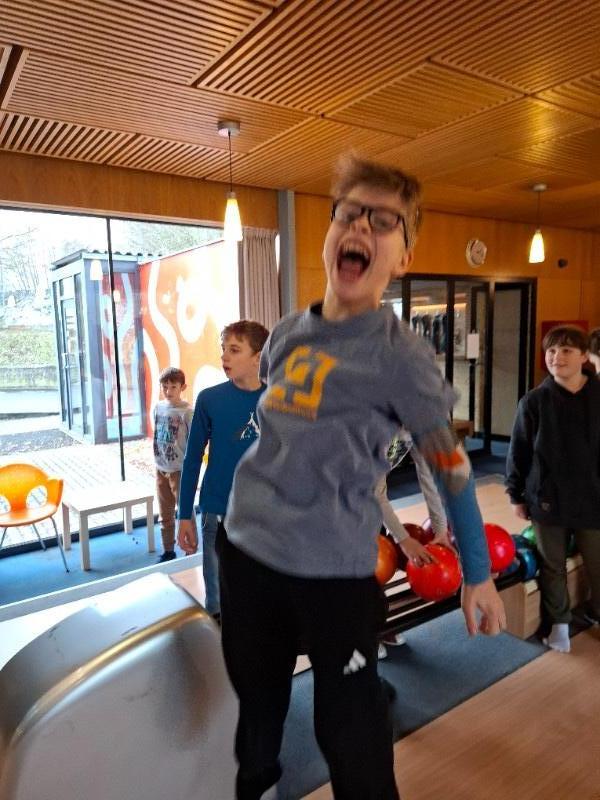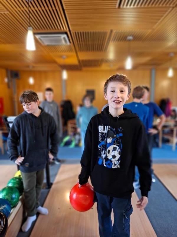 Na poslední pondělí v 1. pololetí jsme dostali milé pozvání od Honzy na bowling a narozeninový dort. Nejen, že chtěl se svou třídou oslavit 12. narozeniny, které ten den měl, ale také chtěl třídě poděkovat za čas, byť krátký, který v novém kolektivu strávil. Spolužáci mu popřáli nejen k narozeninám, ale popřáli mu i mnoho úspěchů v životě. Honza totiž od druhého pololetí bude studovat jinde a budeme rádi, když o jeho sportovních úspěších brzy uslyšíme třeba i v televizi.