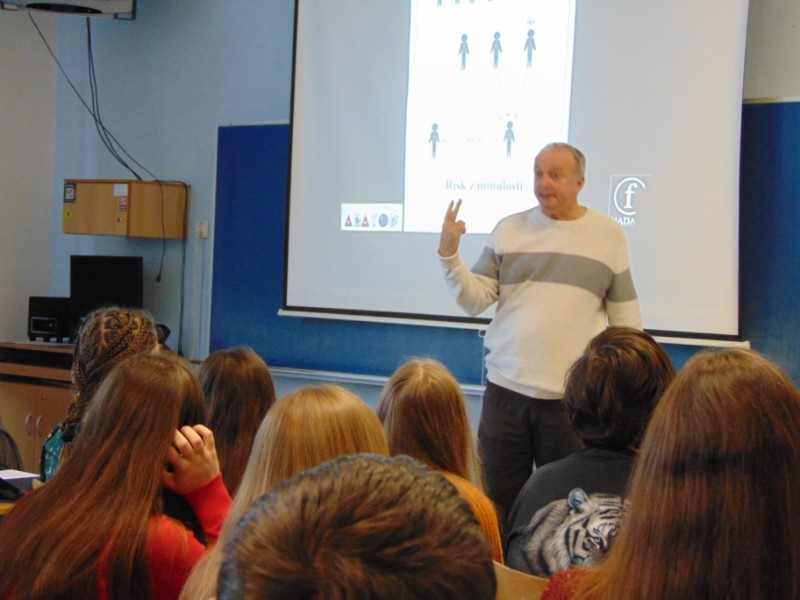 Ve čtvrtek 3. ledna navštívil naši školu evangelický farář Tomáš Řehák se svou přednáškou o sexu, nemoci AIDS, lásce a věrnosti. Jako vždy žáky zaujal! Program je součástí projektu Křižovatky, která škola realizuje s finanční podporou Města Litomyšl.