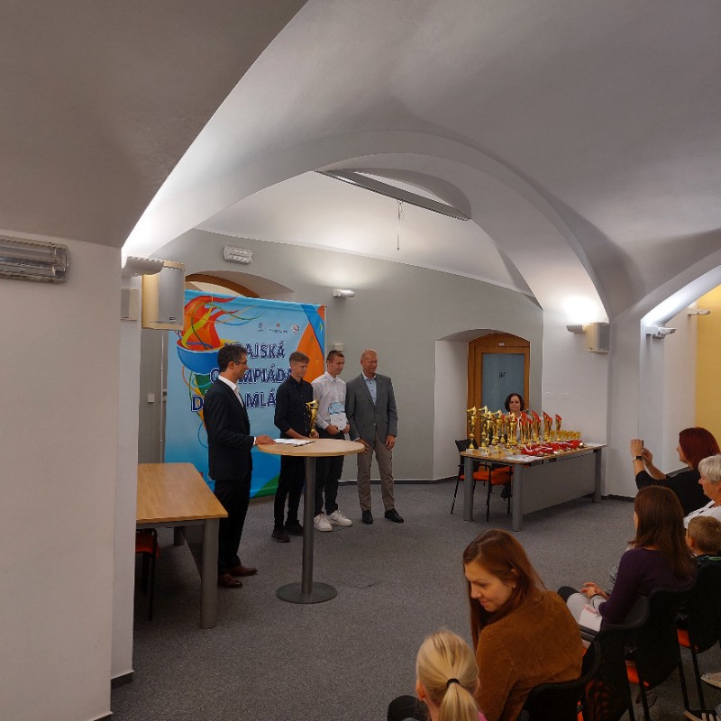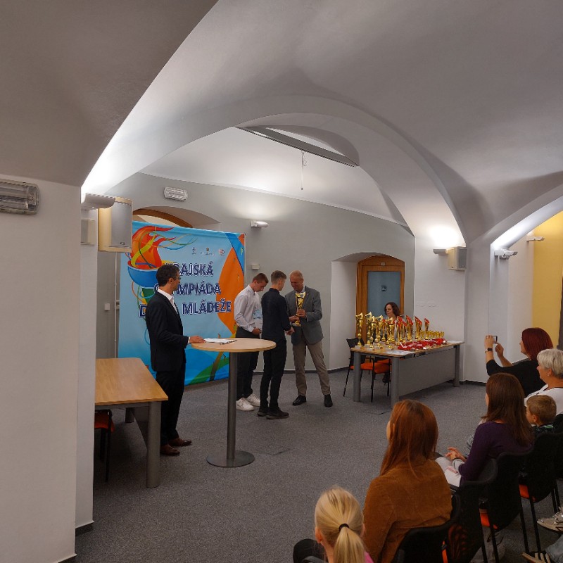 V sále Jana Kašpara Krajského úřadu Pardubického kraje se dnes konalo slavnostní vyhodnocení XXII. Krajské olympiády dětí a mládeže Pardubického kraje spojené s vyhodnocením XXII. ročníku Atletického čtyřboje. Protože se nám v loňském školním roce ve sportovních soutěžích opravdu dařilo, podařilo se nám obsadit skvělé 3. místo. Slavnostního vyhodnocení se zúčastnil trenér atletů, pan učitel Kozák, a dva naši absolventi - Max Jůza a Stanislav Švejcar.