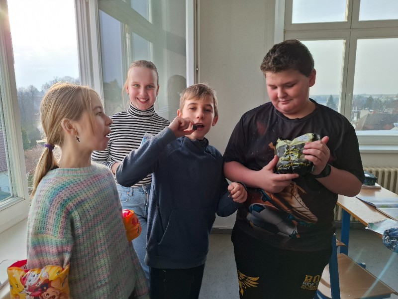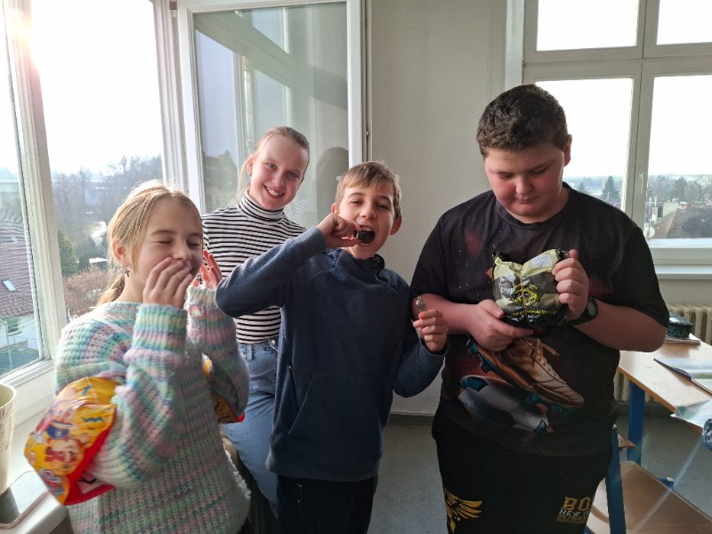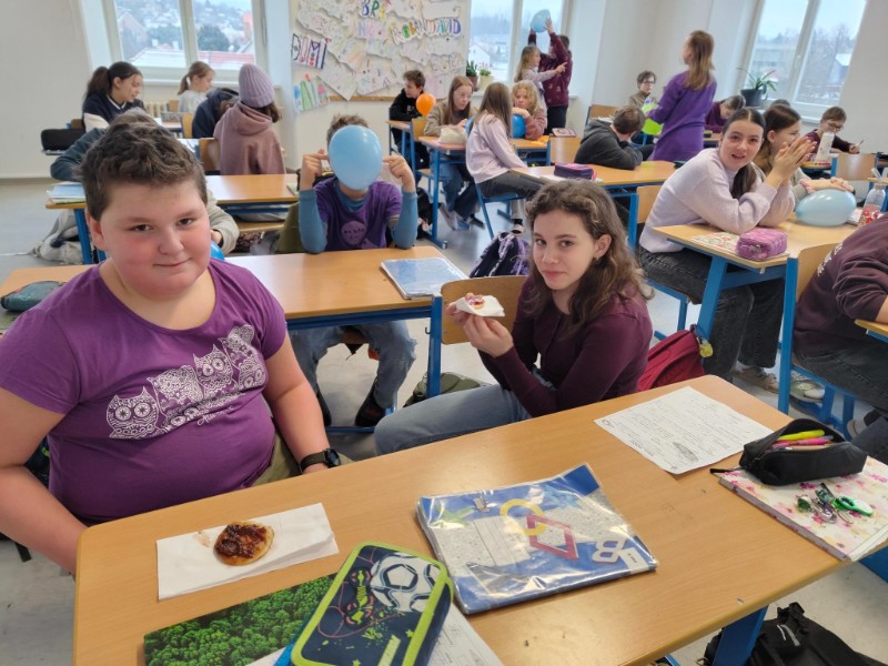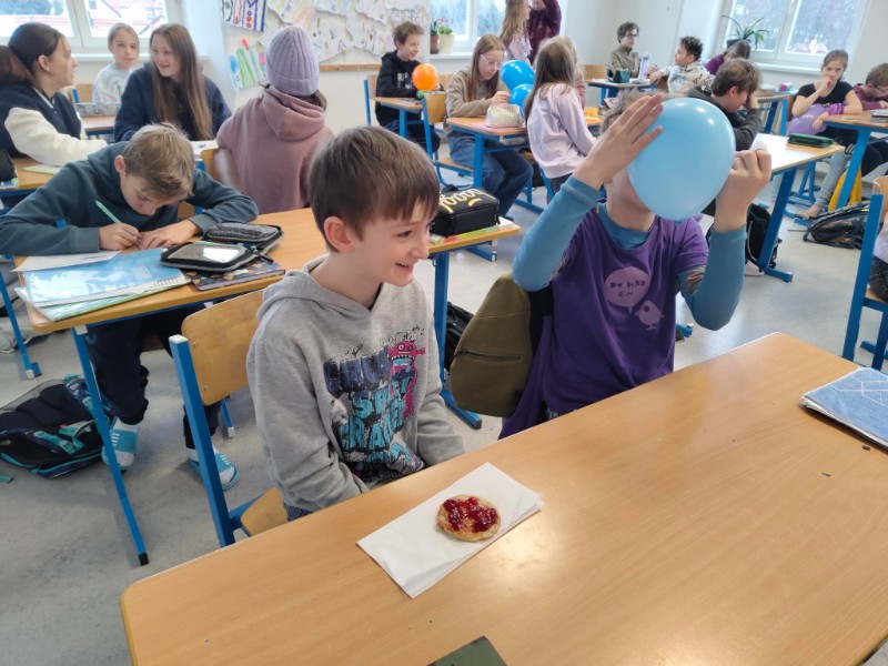 Na první týden v druhém pololetí připadl týden wellbeingu. Na každý den jsme měli připravené speciální úkoly, abychom si pobyt ve škole zpříjemnili. V úterý jsme například měli přijít ve fialovém a pan učitel třídní s paní asistentkou pro nás připravili lívance s marmaládou. Ve čtvrtek jsme si do školy mohli přinést něco z domu. Zadání ovšem bylo takové, že nám to musí být ve škole úplně k ničemu. Těšili jsme se na originální a vtipné nápady. Sešlo se nám tedy ve třídě uhlí, bratrovy zuby i živý králík! V pátek jsme mohli na zeď v centru školy napsat někomu anonymně vzkaz a nalepit ho na obří nástěnku plnou dalších skvělých vzkazů vepsaných do srdce.