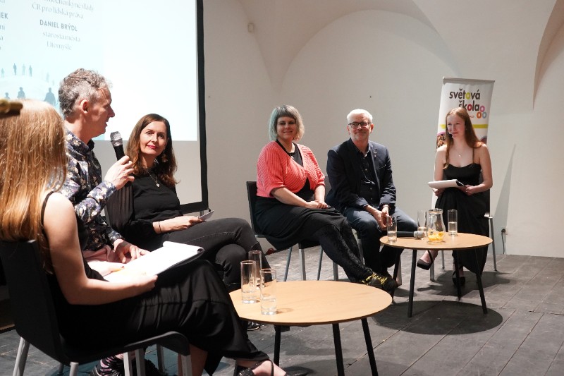 Ve středu 4. března jsme v Klenutém sále zámeckého pivovaru přivítali bývalou zmocněnkyni vlády Kláru Šimáčkovou Laurenčíkovou, mediální koordinátorku rozvojové pomoci Člověka v tísni Terezu Hronovou, koordinátora Fairtrade Česko a Slovensko Stanislava Komínka a starostu města Litomyšle Daniela Brýdla, abychhom si v rámci dalšího ročníku Světové školy povídali o různých pohledech generací na svět, ale i na to, jak by se v budoucnu měla rozvíjet Litomyšl.