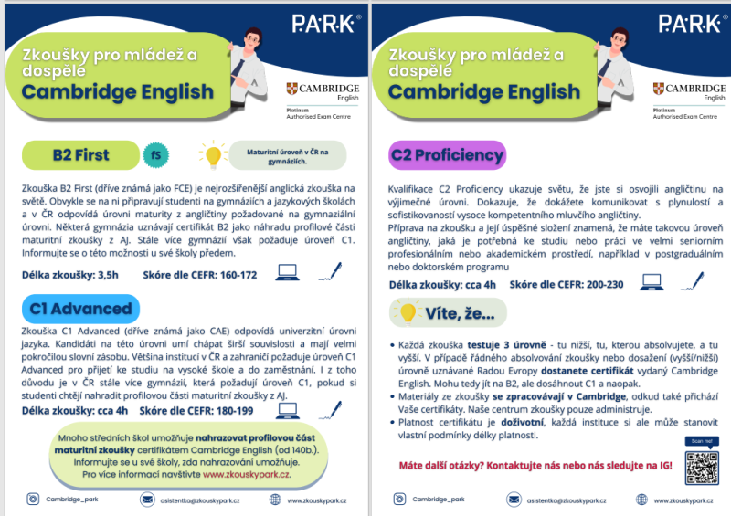 Jsme oficiálním partnerem Cambridge P.A.R.K. School of English