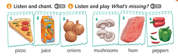 My favourite pizza is ............................( ham, peppers, mushrooms.....)